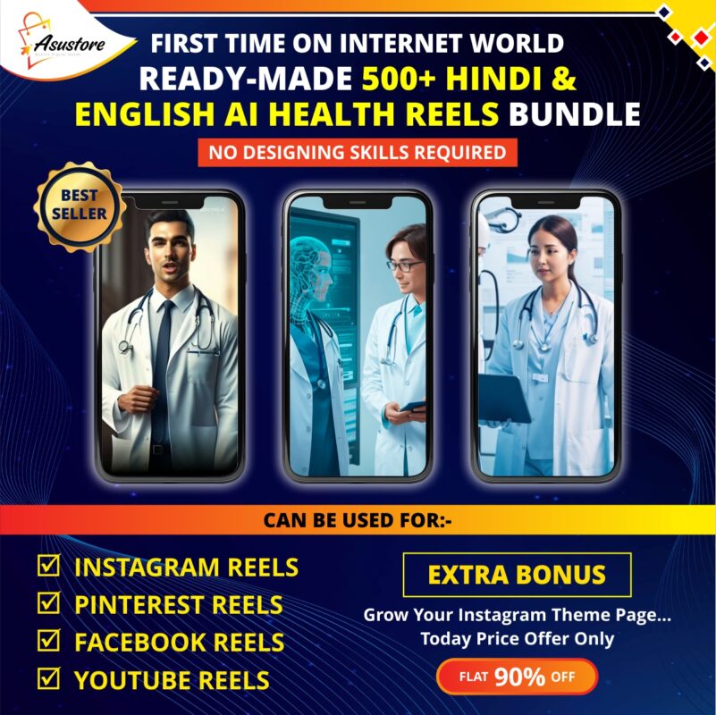 Are you looking to boost your social media presence? Get the Ai Hindi & English Health Reels Bundle. Simply download, add your logo, and publish.